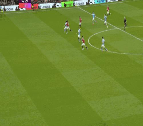 伤停补时阶段,曼联第五次将球送进曼城的球门,库尼亚传球,芒特替补上场2分钟包抄破门,但库尼亚越位在先。