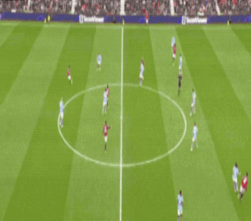 第32分钟,罗德里的回传力量太小,B费抢断后的传球也出现了同样的问题,姆伯莫没能碰到皮球,曼联错失良机。
